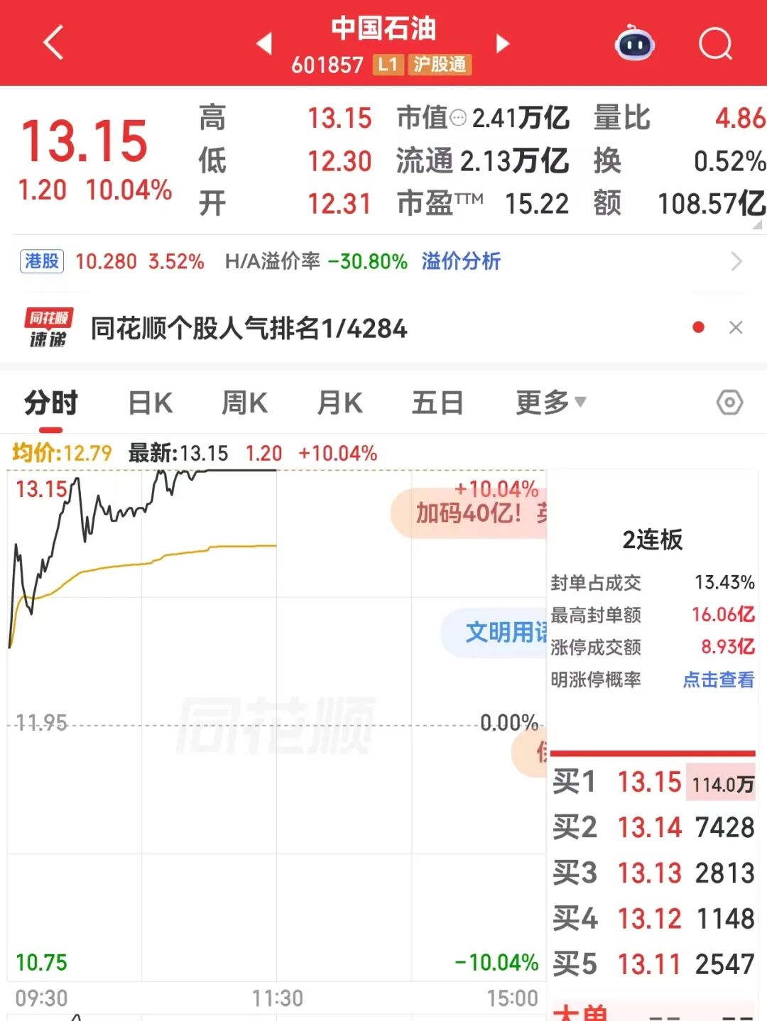 中國石油漲停