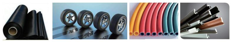 應(yīng)用領(lǐng)域:膠片、膠管、輪胎(內(nèi)外胎)、密封膠條、硅橡膠、阻尼橡膠等。